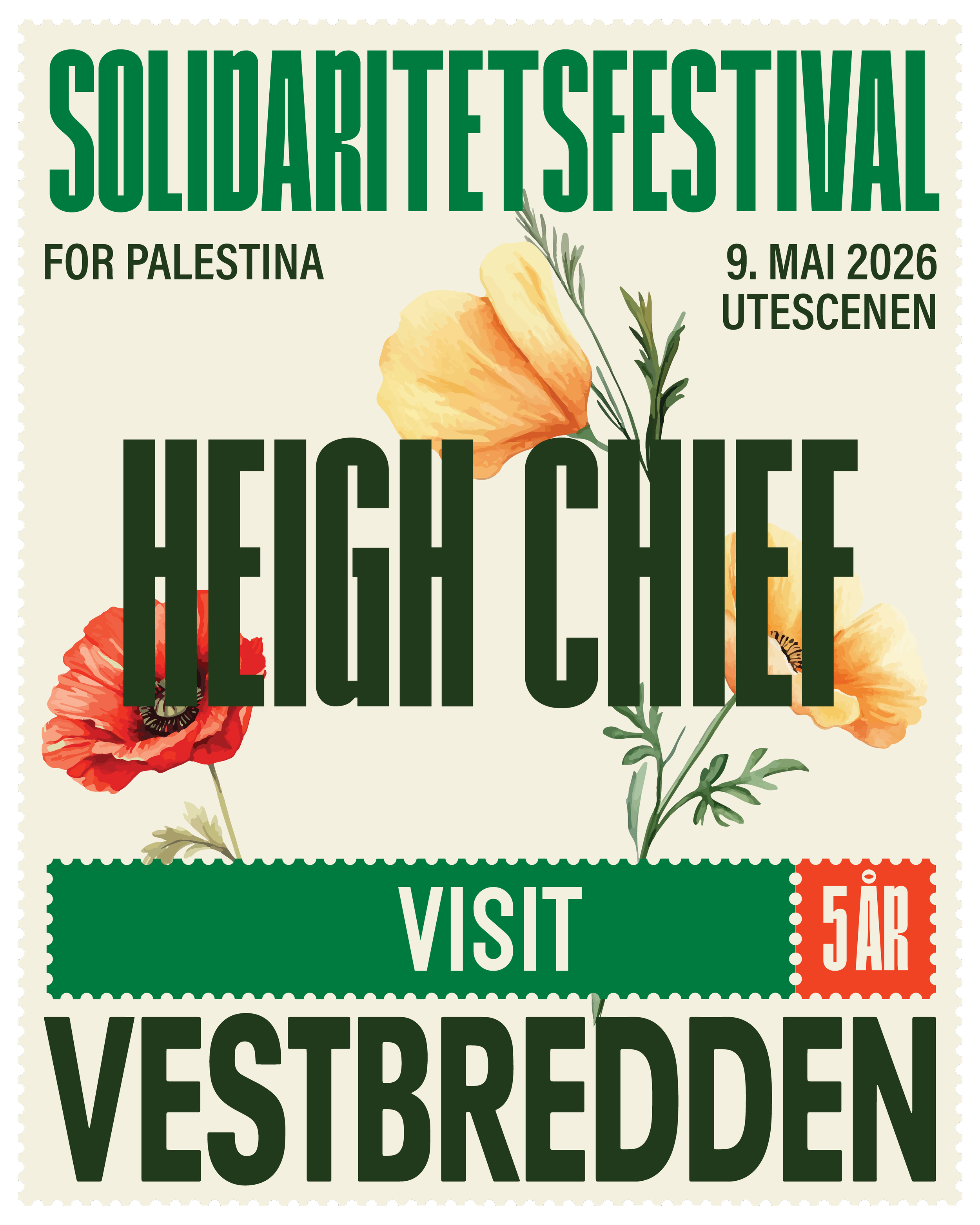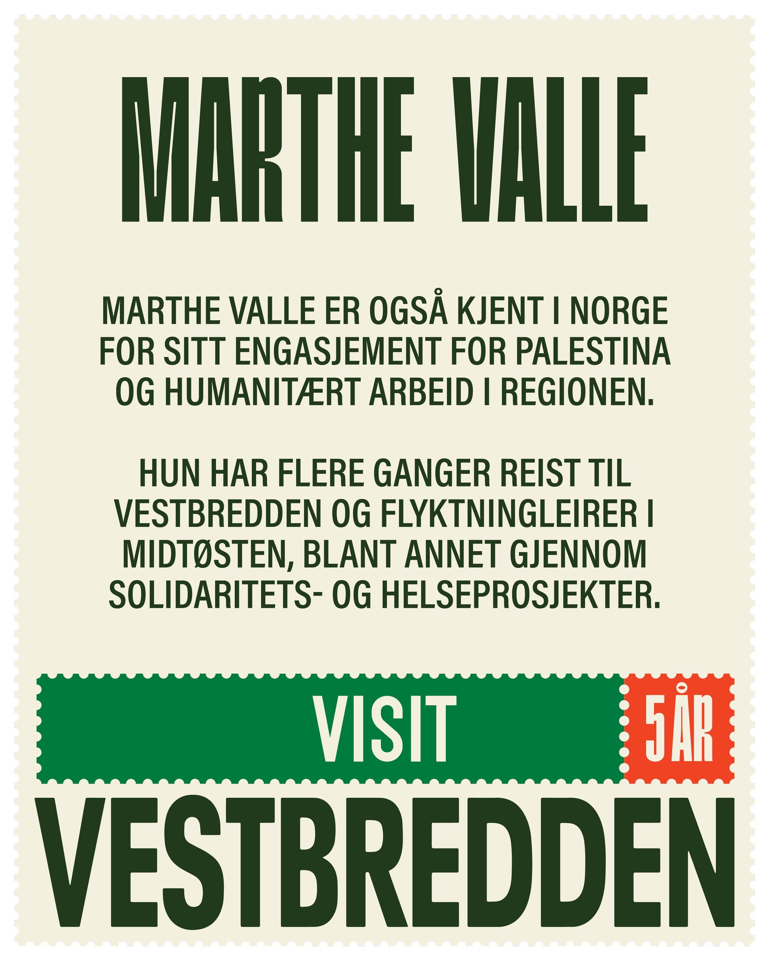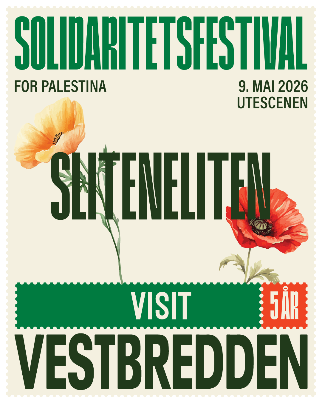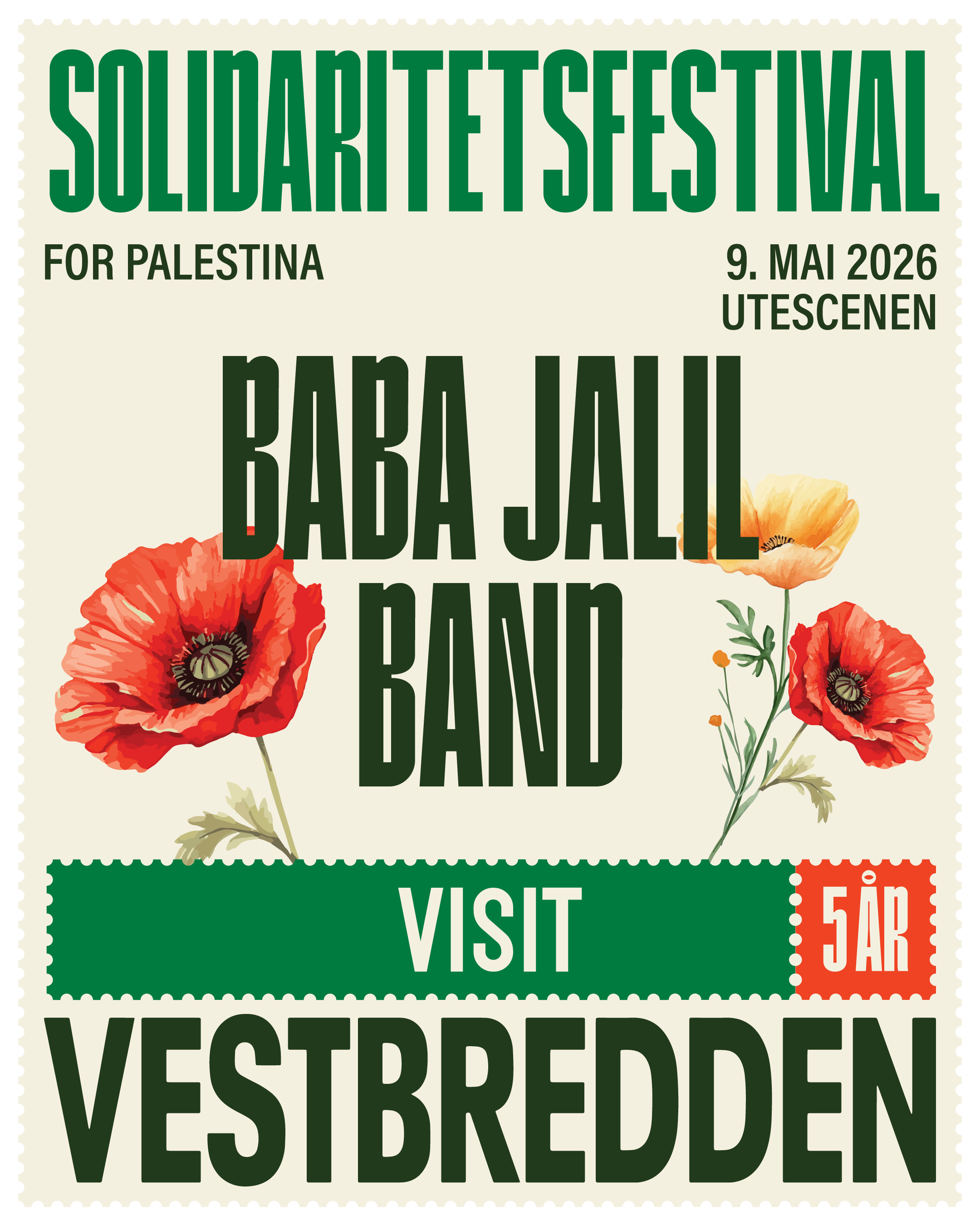 Vi ønsker frivillige til Visit Vestbredden-festivalen som strekker seg fra fredag 8. mai til søndag 10. mai i Oslo, fra Eventyrbrua og til Hausmania. Dette er en solidaritetsfestival som skal fremme og hylle palestinsk kultur, i form av musikk, mat, kunst, panelsamtaler og mange ulike aktiviteter for alle aldre. Arbeidet som frivillig innebærer alt fra å rigge til festivalen, artisthjelp, hjelpe på stands og ulike aktivitetsområder, holde området rent, opprigg og nedrigg.