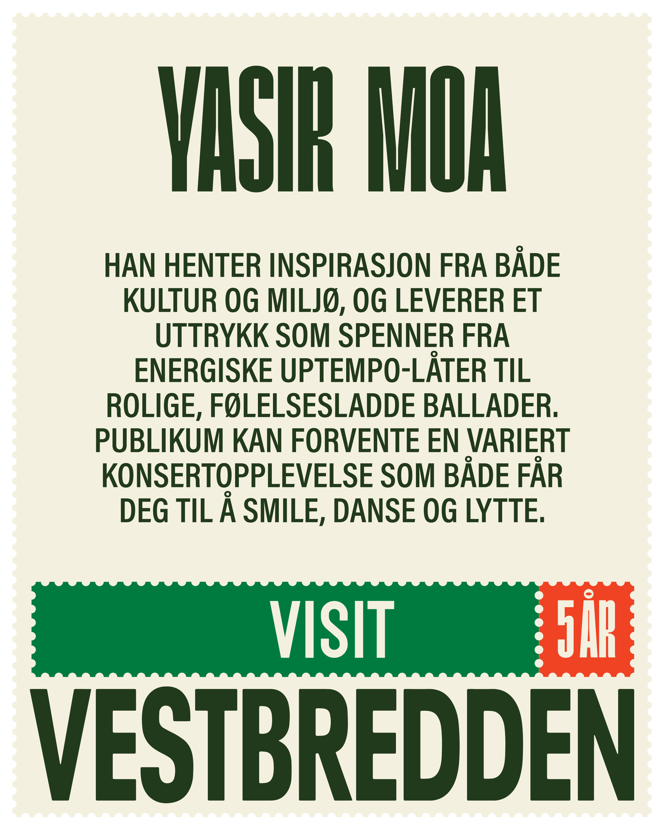 Åpningskonsertene fredag kveld og Visit Vestbredden By Night, lørdag kveld, krever egen billett og er ikke inkludert.